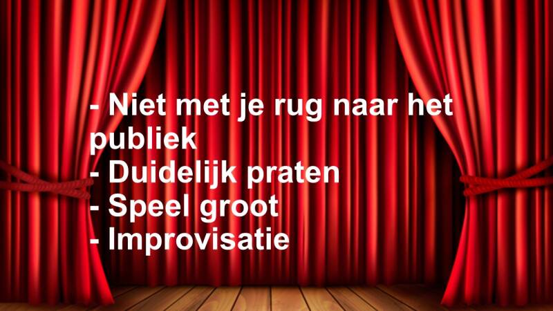 Wat leuk dat jullie je voor dit onderdeel hebben ingeschreven. Op deze pagina kunnen jullie lezen wat jullie moeten doen. Er staan ook allerlei afbeeldingen met tips. Veel plezier met het toneelspelen.